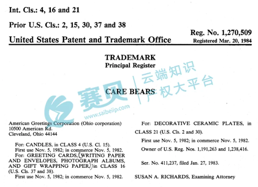 原告持有多枚“CARE BEARS”相关注册商标,均注册于美国专利商标局(USPTO),覆盖多个国际分类,涵盖20余个热门产品类目,以下是商标信息和部分版权信息,因版权太多,就不一一展示。