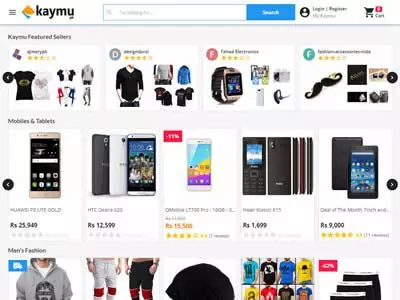 除了销售自己产品外,Kaymu.pk让卖家和潜在买家直接进行交易。Kaymu.pk提供各种产品,包括:服装,时尚配饰,电子,手表,电脑,家用电器,健康美容,运动户外,厨房和花园产品等。