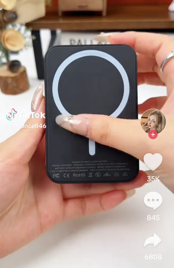 达人在短视频中简单演示了充电宝自动吸附到手机背面并显示充电动画的过程,那种磁吸的精准感和摆脱线缆的束缚感通过画面就能瞬间传达,无需语言翻译,适合全球传播。
