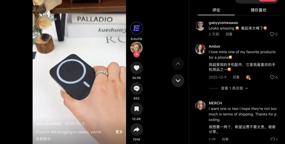 这款磁吸充电宝的成功揭示了一个商业真相,在 TikTok 上,最好的营销不是说服,而是展示。当科技退居幕后,只留下一声清脆的“吧嗒”,消费者的钱包也就随之打开了。