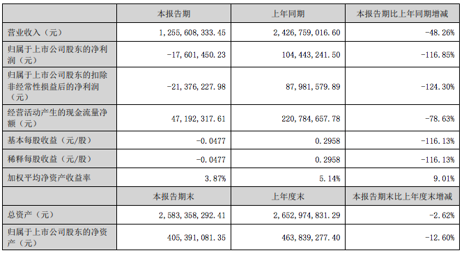 数据显示,2022上半年,星徽股份营收12.5亿元,同比减少48.26%,净利润为-1760万元,同比下降116.86%。
