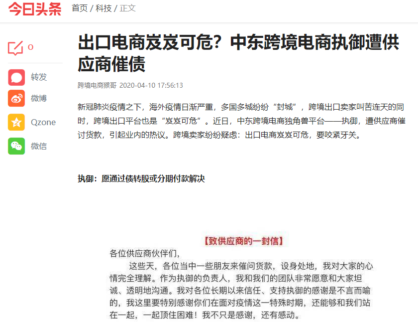 结合亚马逊在疫情期间的做法与在疫情期间对于电商卖家的激励上架行为,再加之现在的扣押账款,实属白Piao行为。有知情人士透露,更与比亚迪被美国加州要求退还买口罩的订金有异曲同工之妙。甚至本应在5月8日于亚马逊深圳办公室商讨解决办法,而等到卖家到达时,则已人去楼空,亚马逊的相关人员避而不谈! 令人疑惑的是,猴哥也找到此次“受害”的亚马逊的卖家朋友进行求证,是否有收到如《申明》第二条中陈述的“已经提前向这些卖家发出过警告”,他们则表示没有收到任何的警告,只是在一封邮件中直接宣判了违规,没收款项,扣押本应该放出的款项。 猴哥虽然也是亚马逊的卖家,但是非常可惜的是没有能够成为亚马逊的头部卖家,单量一直平平无奇,勉强维持一个温饱。不过大家都是卖家,平心而论,兔死狐悲,今天受到伤害的是他们,那么有朝一日,猴哥以及各位的事业更进一步,又是否会轮到我们呢? 当然,就平台肃清卖家中的害群之马一事上,猴哥必须承认的是,确实在很多的国内电商以至于在跨境电商上都有这样的一群卖家,做着违反平台规定的事情,紧抓住平台的漏洞,进行非法销售活动。也一直信奉也支持平台一定要坚决施行严格的管理政策,对于一切损害平台,扰乱消费市场的行为,进行严惩。不过这并不代表可以为所欲为,指鹿为马。希望平台能够查清,不要让一些恪守规矩,本分做生意的中国卖家寒心,尽管可能会存在误伤的现象,我们可以积极的申诉,以期待拿回我们的账号和资金,不过中间产生的损失是无法估量的。 扣押供应商血汗钱的除了亚马逊,还有中东跨境电商执御,不过与之不同的是,执御是因为资金难以回笼,从态度上,比之亚马逊却好了许多。对于没有按期付清供应商的货款,执御CEO李海燕在“致供应商的信”中表示,执御愿通过债转股或分期付款办法的方法,与供应商协商解决。我们跨境卖家不是一个不讲理的团体,我们渴望与平台沟通,平台是我们赖以生存,赖以谋财的渠道与途径,从出于自己的未来的财路来看,可能会有更多新兴的跨境平台,但是我们在一个平台上尝到了甜头,在平台中占据了一定的份额,我们就已经与平台的利益形成了捆绑。假设平台有困难,我们愿意施以援助之手,但是对于避而不谈的态度,以及强硬的执行措施,表示愤慨。 我们跨境电商从业者,有的人在亚马逊上赚钱,有的人在执御上赚钱,还有的从Wish、Ebay、Vova赚钱,还有猴哥目前的主场是通过一些新兴的蓝海市场,例如巴西、东南亚Shopee,还有印度Club factory等。 因此,猴哥希望给到一些大家如果是新加入跨境电商的圈子的跨境新人一些建议,经此一役,我们不难发现,跨境电商的担当其中还是有很大的区别的。 首先,可以看看,该电商平台是中资还是外资,是外资是华裔还是纯外资,在亚马逊事件当中,有人认为这是美方对于中方跨境卖家的一次打压,这个猴哥不予置评,不过从经验上看,中资与华裔跨境电商平台会相对的考虑本土的卖家。因为假设说,卖家与平台的矛盾激化,吃亏的99%都是卖家。 其次,看下平台的历史公关危机,尤其是在处理供应商与平台之间的矛盾上,平台是否公正是否公允,不然很可能,在某一次平台的清扫行动中,你也会被“误伤”,然后导致在该领域的成果,一朝散尽。这是极为考验一家平台的担当的。当然也不要偏听偏信,毕竟也确实存在一些卖家恶意造谣。 最后,请理清楚自己的生意模式,君子爱财取之有道。我们还是要相信这份事业,给我们带来了财富,同时也只有诚信经营,才能够让自己的生意愈发持久。若想要生意更加持久,财富积累的越来越多。走一条,品牌沉淀,品牌积累的路线,才可以让自己在大浪淘沙中,屹立不倒。这也是最无法让平台诟病的一个途径。