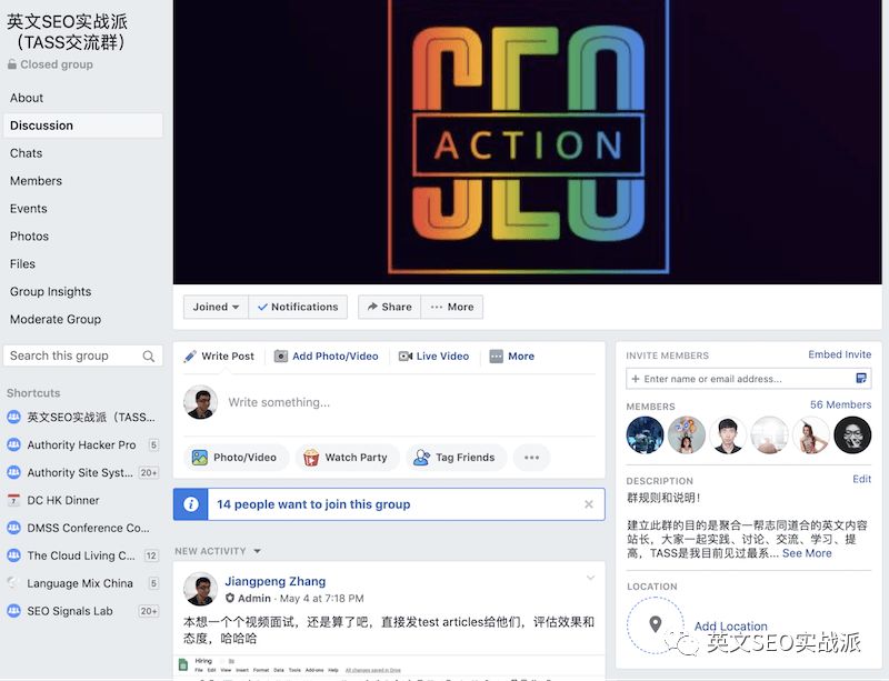不过,我开了一个private facebook group,为购买和学习TASS课程的英文内容站长们建立一个圈子,没事讨论交流聊天。