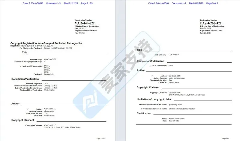 26-cv-00046,TRO冻结预警!Car Crash版权首维权,跨境卖家速排查下架!