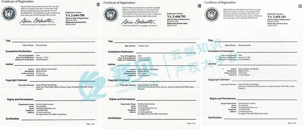 此次维权的是 3 项圣诞、冬季场景主题作品,版权注册号分别为VA 2-444-790、VA 2-451-141、VA 2-444-793,这三项作品是节日装饰、贺卡、礼品包装、家居摆件等产品的热门设计素材。赛贝提醒跨境卖家,未经授权不得擅自使用,以免引发侵权风险。