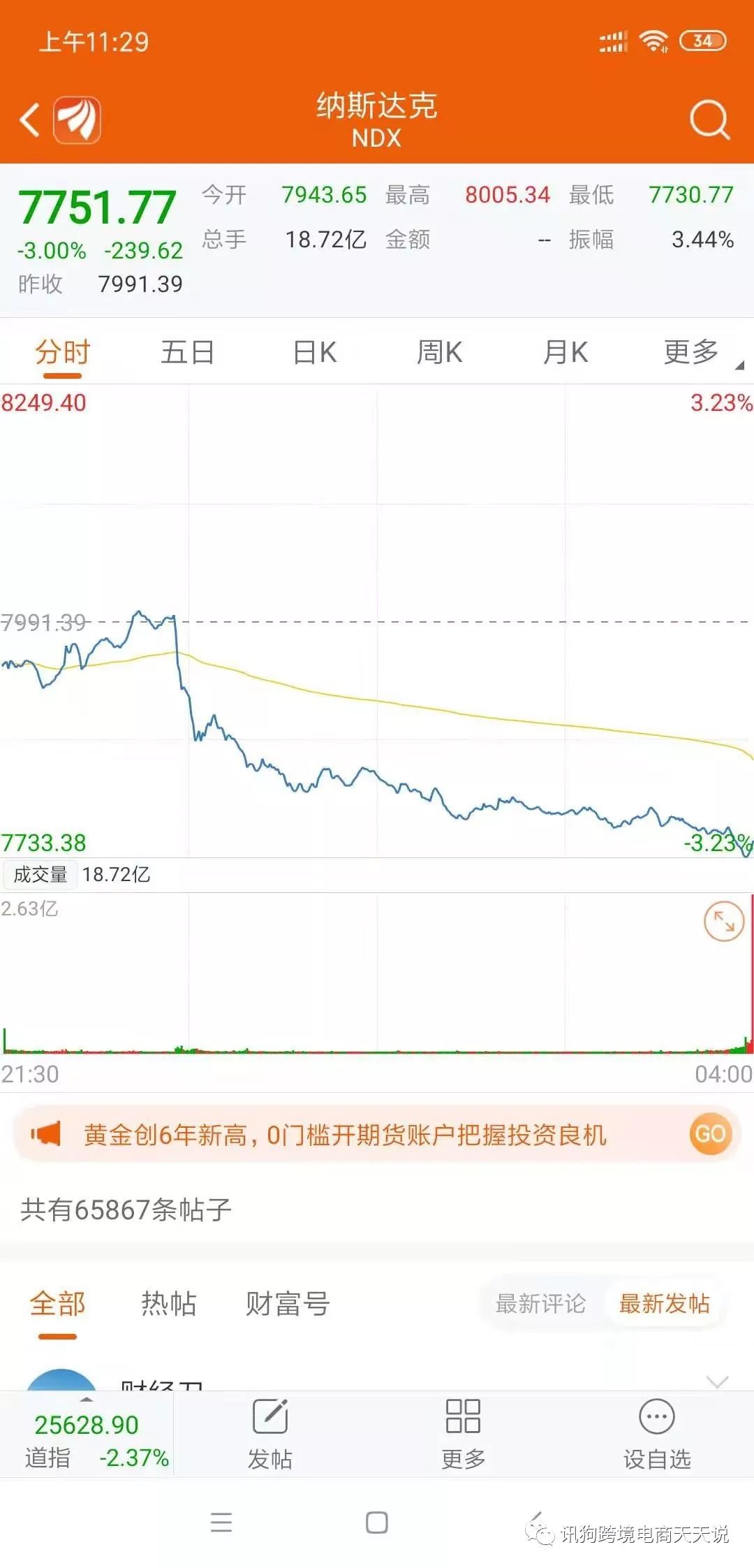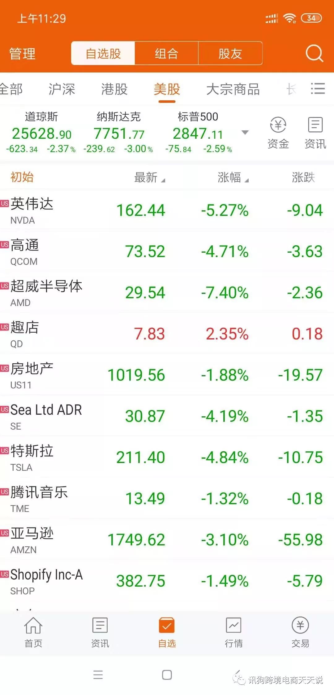 包括跨境电商三巨头亚马逊,Shopify,Shopee(Sea Ltd)全部一片大跌,
