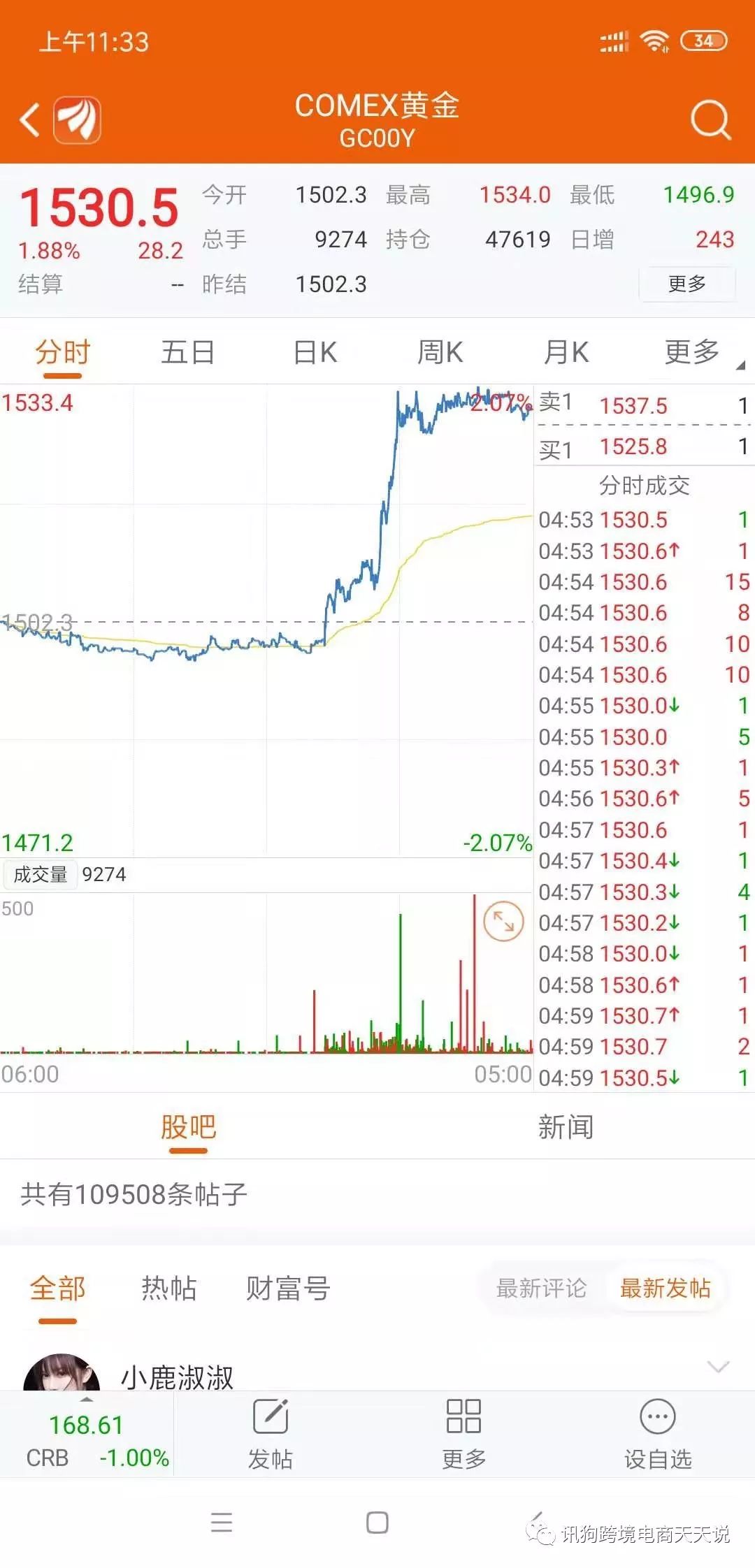 前面跟大家说的反向避险的黄金和日元则是大涨,