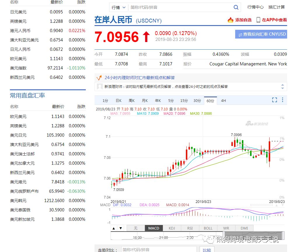 美元兑人民币从7月到现在升了四个点,