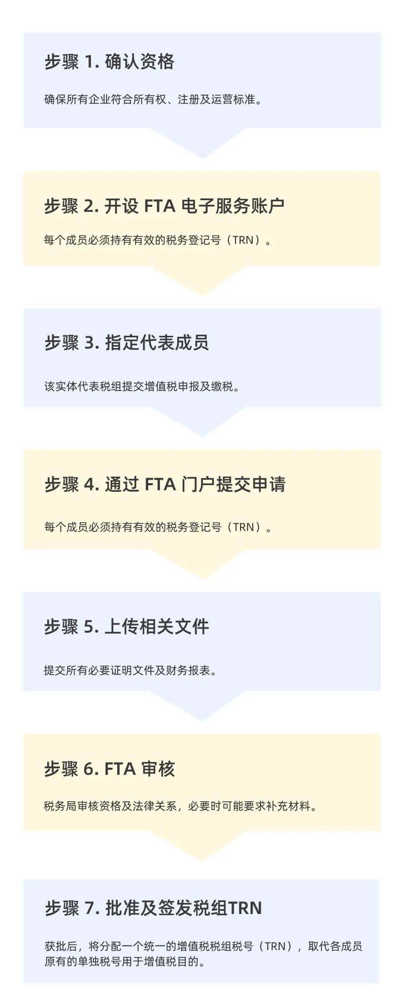 在阿联酋开展业务时,如果集团架构下存在多个关联公司分别运营,增值税合规往往会随之复杂化。不同实体分别申报,不仅增加行政成本,也可能因内部交易反复计税而影响现金流效率。为应对这一挑战,FTA推出了增值税税组注册机制,这对于多实体运营的企业尤为重要。