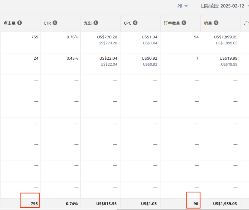 广告点击Ad Clicks是795次,带来96个订单,整体广告转化率是12%。