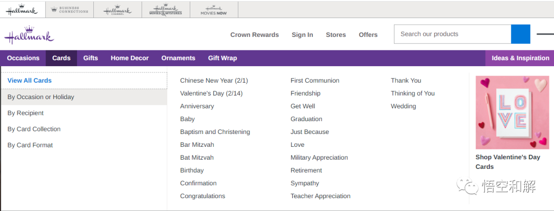 Hallmark (贺曼公司) 在1910年创立,业务多元化,包括贺卡、文具、服装、寝具、化妆品、电子贺卡、电脑软件、数码娱乐、电视频道等。