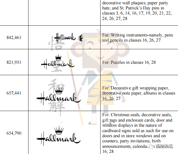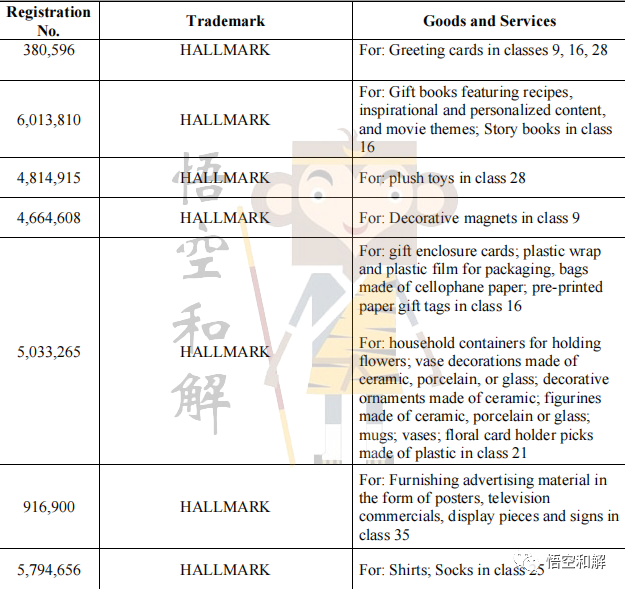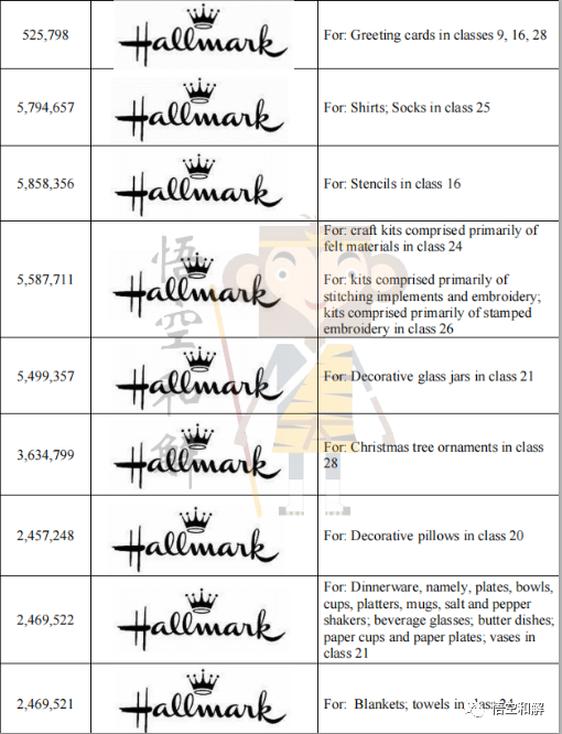 诉状中主要提到的是就是Hallmark文字以及图案商标,暂时没说版权问题: