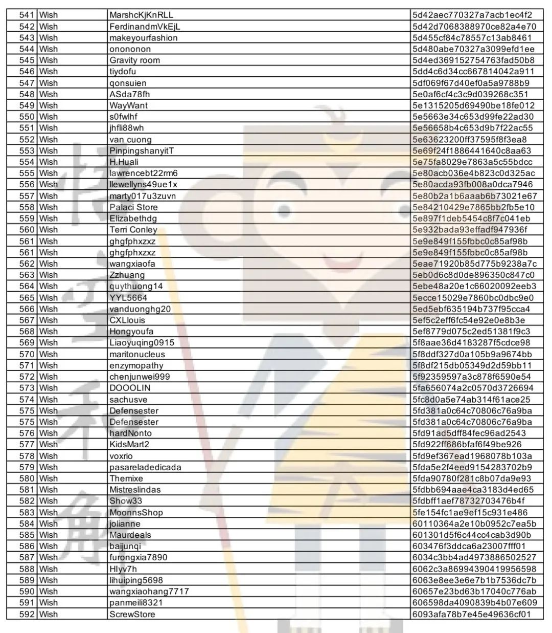 最近不少客户来咨询David律所冻结的新案件:21-cv-6027 Bear Paws 熊爪,悟空这两天查到了该案件的被告名单,一次性起诉了592个平台账号。