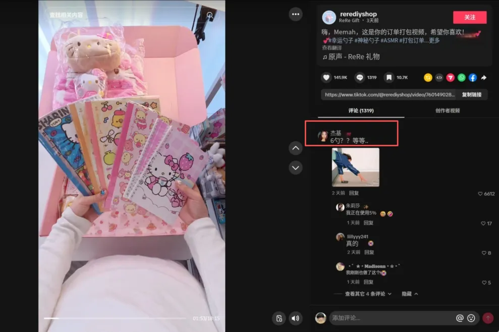 我们可以从ReRe Gift的评论区里看到,真正被卖出去的,从来不完全是那些可爱的珠子、文具、包包。