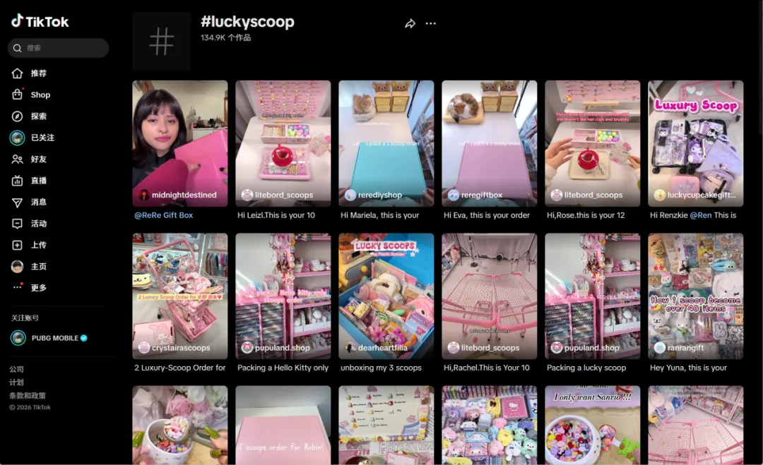「packing orders」「lucky scoop」相关话题,在 TikTok 上的相关作品都有十几万。