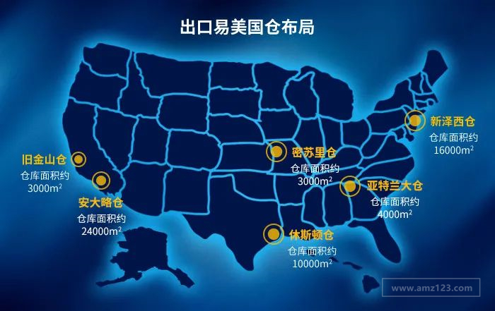 出口易在美国分为东部、中部、西部布局6仓,相互呼应,就近发货,可节约30%-40%的运输成本,并提高配送时效。以美东-新泽西仓为例,当天上网率≥99.9%,6天内妥投率95%以上。