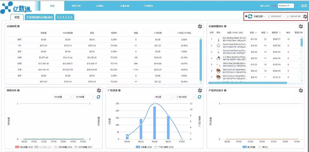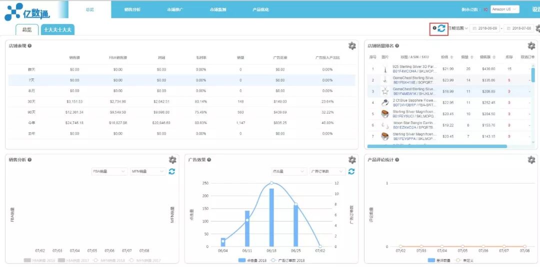 4. 点击刷新按钮,将刷新页面数据,同时将看板日期范围应用到所有适用的分析器。