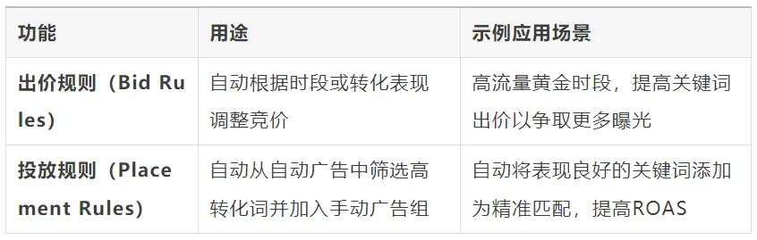 除了全球投放,亚马逊还在广告设置里新增了两项“自动化管理”功能: