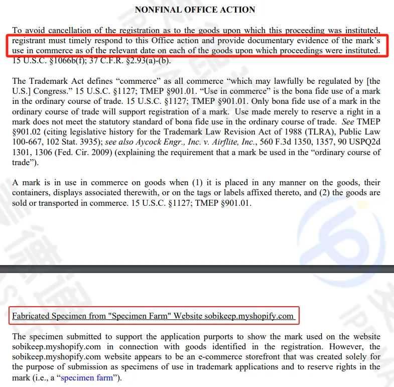 USPTO近年来,愈发加强商标各项审查制度。而早在之前,USPTO就针对虚假使用证据——“使用证据农场”下发过多次重审通知。针对于商标申请人提交虚假使用证据而引导下发商标审查事件,麦麦也多次发布内容提醒各位卖家严格按照USPTO要求提供真实使用证据样本!