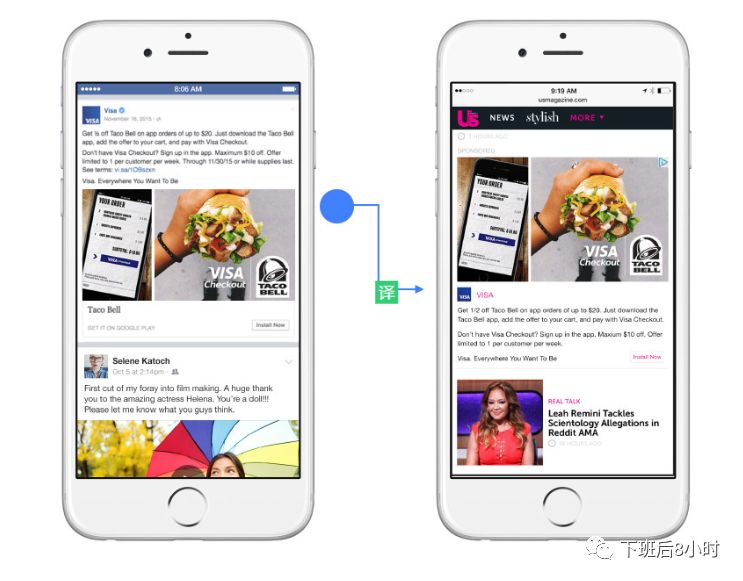 目录促销:如果选择目前促销为目标创建动态广告(dynamic ads),使用audience network可以根据受众在网站或应用中浏览过的商品,及时投放相关商品的广告。