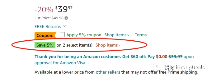 有老铁经常问我如何设置listing前台显示红框中的这个绿标“Save5% on 2 select item(s)”?