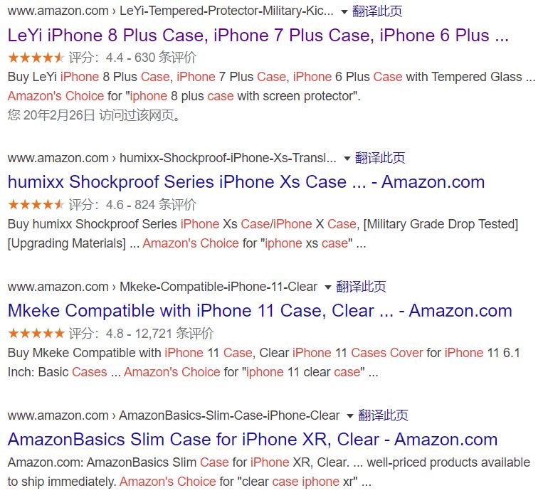 Google会显示大量同类目的Amazon's Choice