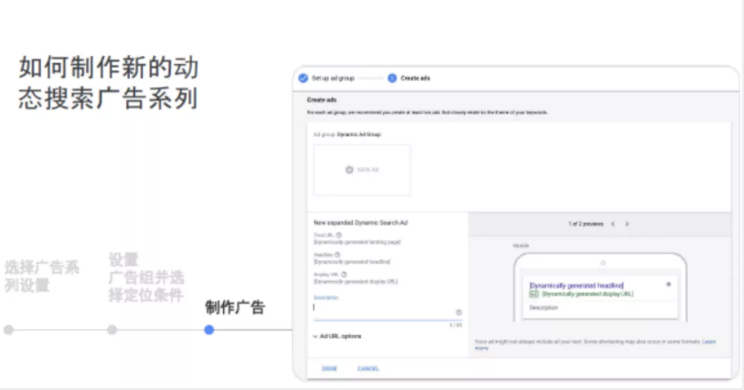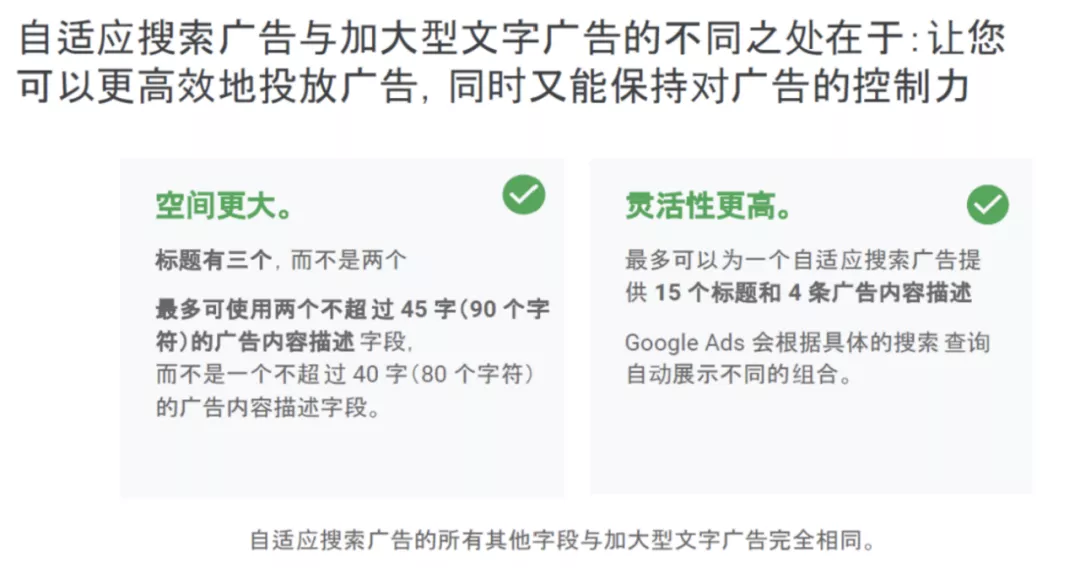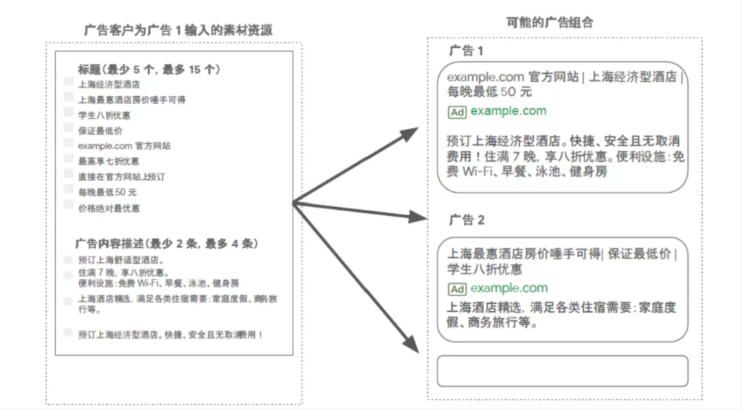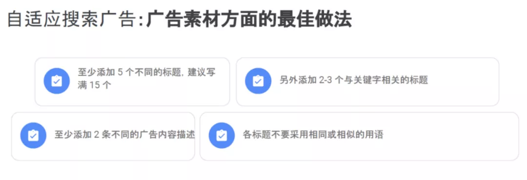 自适应搜索广告通过动态调整广告的内容,使其更贴近潜在客户的搜索字词,从而提升广告系列效果。制作自适应搜索广告时,需要输入 3-15 个标题,2-4条文案。