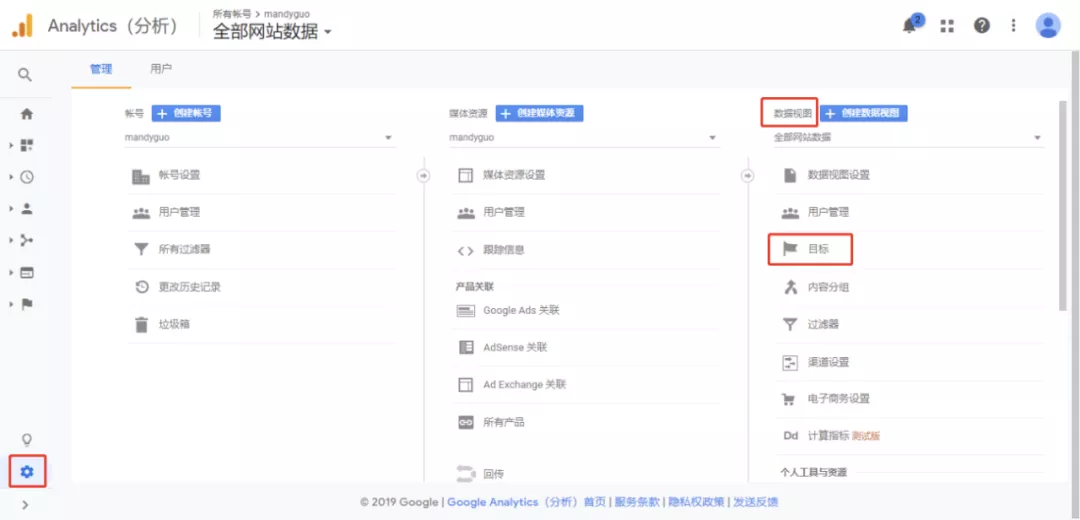 进入GA,在管理界面操作如图。点击目标后,点击添加新目标进行创建