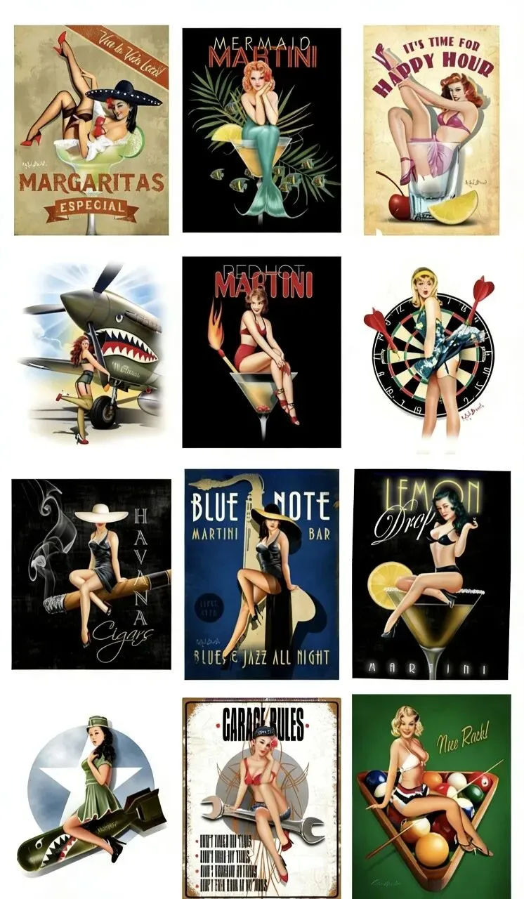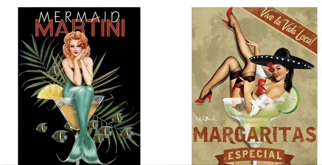 原告Ralph Burch主要以复古海报女郎主题进行艺术创作,画作里常见马提尼酒、鸡尾酒、摩托车、改装车等元素。