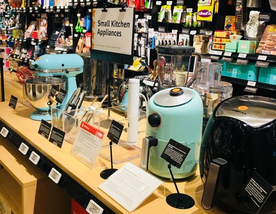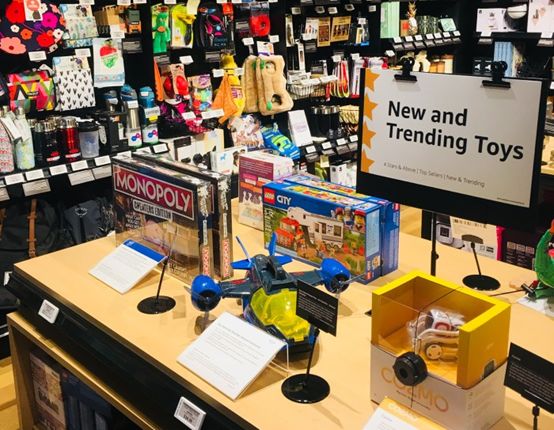 首先在产品布置方面,除了根据产品类目属性来布置货架之外,依据亚马逊线上商城的数据,还设置了“心愿单(Most-Wished-For)”货架、“买了又买(Frequently Bought Together)”货架、亚马逊独家(AmazonExclusives)还有根据店铺所在位置(文中该店铺开设于纽约)而设置的独具特色的“纽约畅销品(Trending Around NYC)”货架等。