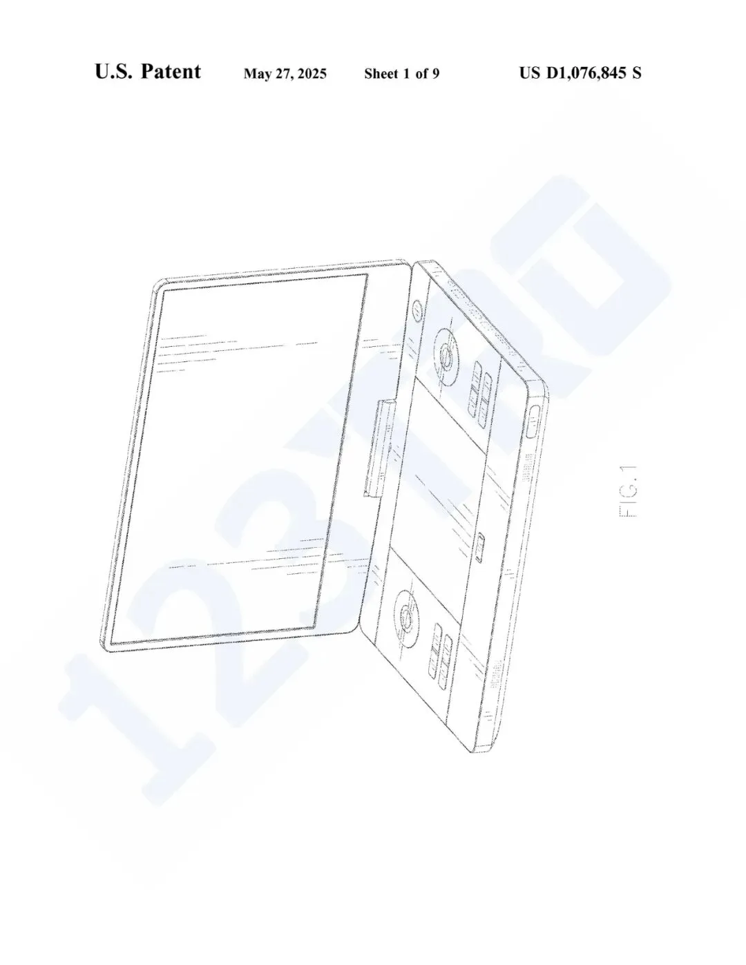 涉案专利USD1076845S属于外观专利,在今年5月27日下证