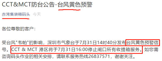 黄色预警 | 台风“韦帕”来袭!华南各大码头全面停摆,船期将面临大面积延误!