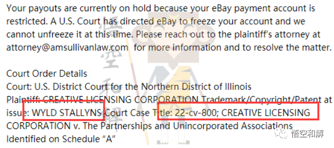 AMS律所在2/14日发起的隐藏案件,这两天收到eBay卖家反馈已经开始冻结,管理支付遭到限制。