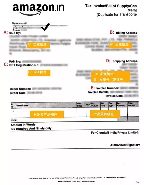 注:该发票一式三联(一联卖家自留;一联置于货箱交由承运商;一联给买家)