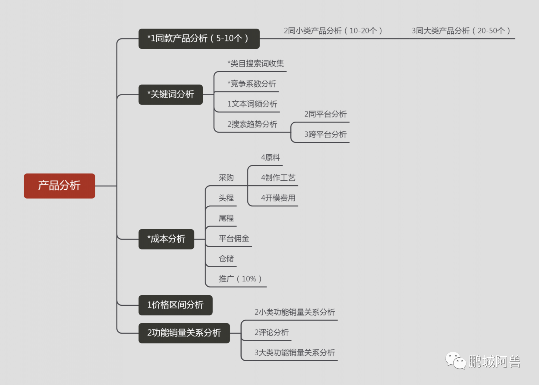 *.表示你必需要做的相关分析,也算是一个挺简陋的分析了,通常来说这种分析就是拿来应付上级领导和大老板天马行空的创意用的,因为这种上头临时起意选出来的产品大部分要么是红海标品,要么是冷门到不行的垃圾货,所以你大多数时候只需要做个成本分析把利润或者同款产品的销量标红给领导看就可以了,等他们脑子冷静下来基本上也就不会考虑了。(当然,要是他脑子一直热那我也没办法,毕竟亏得是老板的钱,你只需要做好联系服务商做好后续卖不出清库存的相关方案即可,反正你建议已经给了)
