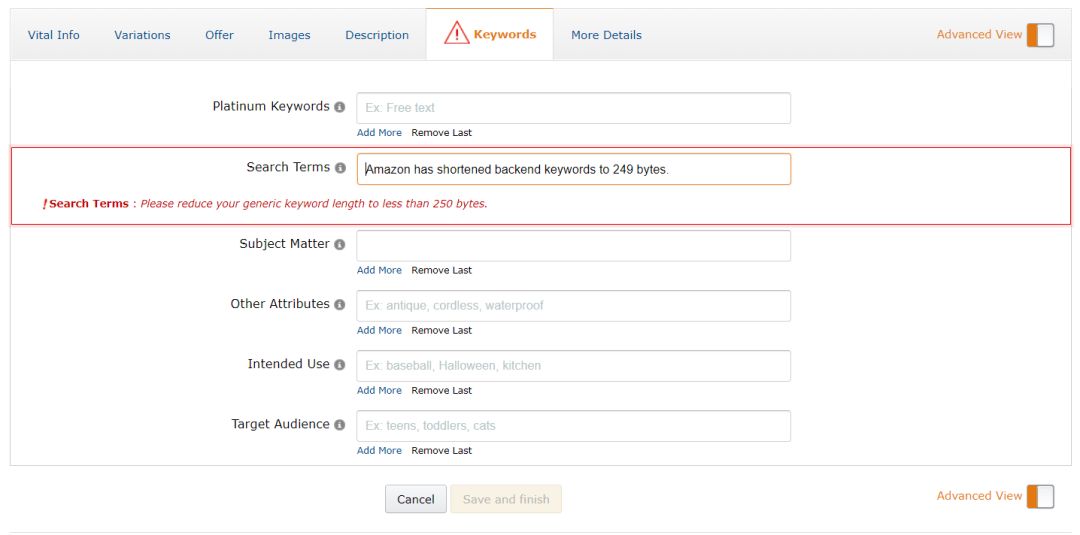 并非刁难,亚马逊规则每次更新都有它的意义。在即将到来的旺季之前,亚马逊对Search Term进行更加严格的更新,原先的五行关键词变成一行,且不得超过250字节,其中包括空格和标点符号。仔细分析,我们可以知道亚马逊此举在于促使后台关键词与买家搜索词最大程度匹配,同竞价的道理一样,不浪费每次展现的机会和点击转化。
