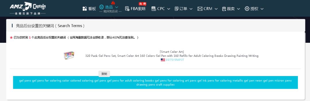 船长根据亚马逊提供的“Tips for optimizing your Search Terms”中对于卖家书写ST的要求,给大家如下修改/优化建议。 随手搜了一个“colors gel pens”,以首页商品B075Y9MP3T作为例子。 通过船长大数据的「窥探竞品词」功能查找到该商品的关键词如下: “gel pens gel pens for coloring color colored coloring gel pens gel pens for adult coloring books gel pens for coloring art pens gel ink pens for coloring metallic gel pen neon gel pen micron pens drawing pens craft supplies” 249字节不多,怎么写才对? 1、拼写正确是最基本的。 2、其次,为满足不同买家的搜索习惯,新规中允许的可包含不同拼写格式,就如我们看到举例商品关键词中的“color colored coloring gel pens”含有“color”的原型与过去分词、现在分词格式。 3、如果关键词中涉及某些名词在对应站点有常用的缩写形式、别称,最好是把缩写和全称写上,例如television(TV)、compact disk(CD);但是对于表示单位的名称如cm(centimeter)、kg(kilogram)只需写上缩写即可,正常情况下买家搜索时是不会大费周章打出这些单位全称的。 4、大小写对于搜索只有一点点点影响,几乎可以忽略不计,但如果你需要深入研究并优化,可以利用亚马逊前台搜索数据来总结,就比如我搜索“colors gel pens”时举例商品显示在首页第四,而搜索“Colors Gel Pens”显示在首页第六。 5、虽然亚马逊的要求是“use singular or plural, no need for both”,但是船长测试过使用单数形式搜索、复数形式搜索、单复数混合形式搜索,同一个商品的显示是不一样的,所以建议大家,有空位的话尽量把纯单数或纯复数两种形式写上去。 6、适应不同站点的语言表达,例如举例商品是在美国站销售,如果换成英国站,关键词中全部的“color”就要换成“colour”。 7、适应不同时节的消费情境和消费习惯,特别是可以作为节日礼物销售的商品,就比如举例商品是一款文具,在7-8月开学季时就可以在关键词中添加上相关单词或词组,例如“colors gel pens for term begins”之类的。 8、不需要多次重复相同的单词,像举例商品的关键词设置多个不同的“gel pens for XXX”是可以的,但如果是其他,比如你需要表达比如你的产品是“女士休闲鞋”,可能涉及的关键词还包括一些修饰性的词语如Woman's Shoes, Casual Shoes, Sports Shoes,那么,你可以汇总写为Woman's Casual Sports Shoes,节省占用的字节数量。 9、使用空格代替所有的标点符号,特别是连字符“-”,虽然“-”只算一个字节,但是使用“-”与不使用“-”的词组搜索结果是不一样的,不使用“-”被搜索到的概率更大一些;另外,诸 如 “a”、“an”、“and”、“by”、“for”、“of”、“the” “with”这种介词没有必要写上。 10、不要在关键词中写到自己或他人的品牌词、ASIN;不要有主观性的形容词如“best”、“cheapest”、“amazing”等;不要带有“new”或“on sale now”字眼;不要带有辱骂性语言;这些在以前的规定中也是有的。 249字节不少,词从哪里来? 最直接的方法是,参照竞品的关键词设置,加上竞品的流量词作为参考。 船长大数据的「窥探流量词」帮你找到竞品主要搜索流量来源的关键词,大家在使用的时候可以根据搜索排名和搜索指数排序,选择排名并流量靠前的关键词来用。 当然并不是只要将符合条件的关键词拼凑成堆就可以了,针对不同产品的特性,结合上述共10点的新规要求来修改或优化你的Search Term,问题就不大。 另外,在Search Term新规之下,我们可以做的除了将其修改、优化好符合要求之外,还可以进一步优化标题和五行描述,并且将图①中的Subject Matter、Other Attributes、Intended Use、Target Audience等信息补充完整,增加被买家搜索到的概率。