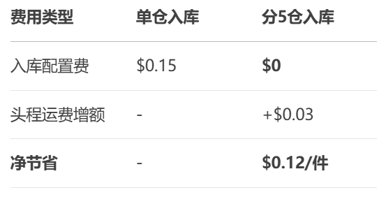 第二阶段:分仓策略+入库费归零(省$0.15/件)