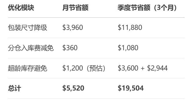 避免超龄库存费:800件×$1.5×3个月=$3,600
