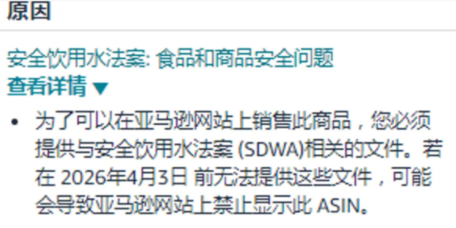 亚马逊明确要求,所有涉及与饮用水接触、或安装于供水系统的产品,必须在4月3日之前提交符合美国《安全饮用水法案》(SDWA)的认证文件,核心要求是持有ANSI认可机构出具的无铅证书。