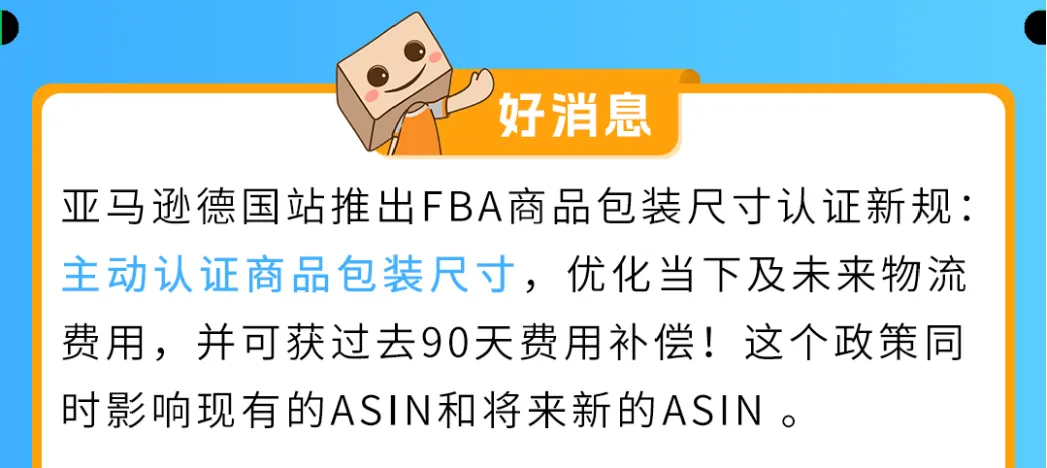 亚马逊德国站要求卖家在2026年4月30日前,通过卖家平台认证现有ASIN的包装尺寸,或提供更新后的认证尺寸。截止前未完成认证的,系统将默认当前尺寸数据已通过认证。
