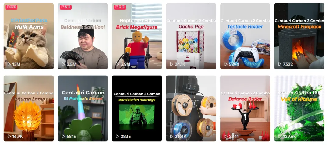 @bimbus_printables(14.61万粉丝,创意类博主),为猫咪打印头盔,视频获1360万播放,用趣味场景打破技术壁垒,扩大品牌影响力;