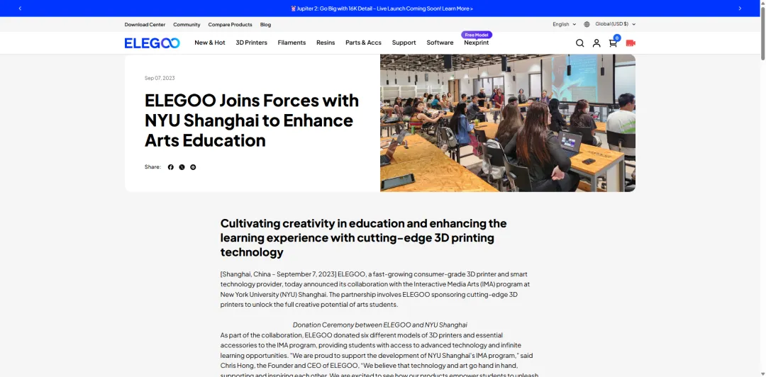 自2015年创立以来,ELEGOO已支持全球70+学校、大学及研究机构,2024年向美国Bonham ISD学区赞助16台FDM 3D打印机,深耕教育场景,既扩大了品牌影响力,也强化了“有社会责任感”的品牌形象。