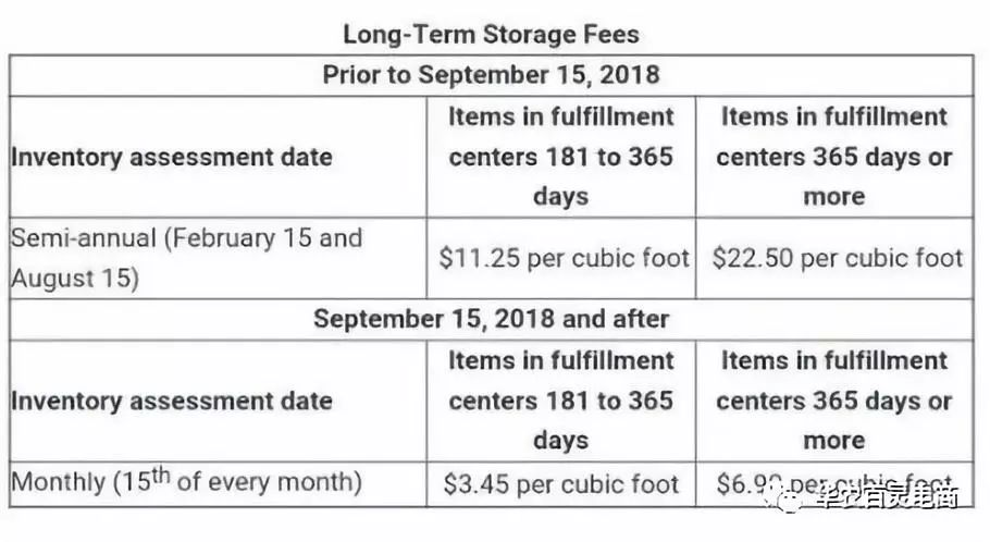 以前每年 2 月 15 日和 8 月 15 日,亚马逊物流将进行库存清点,从2018年9月15日起,长期存储费将进行调整,评估日期将从每半年一次改为每月一次,具体收费如下图所示: