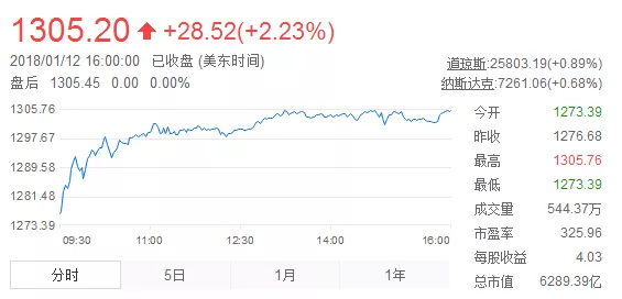 1月11日,亚马逊收涨1.78%,创下1276.68美元的收盘新高。自开年以来,亚马逊股价持续上涨,累计涨幅达到7.37%,市值现已超过6150亿美元。2017年,亚马逊全年涨幅约为56%。摩根大通对亚马逊的互联网广告业务表示看好。