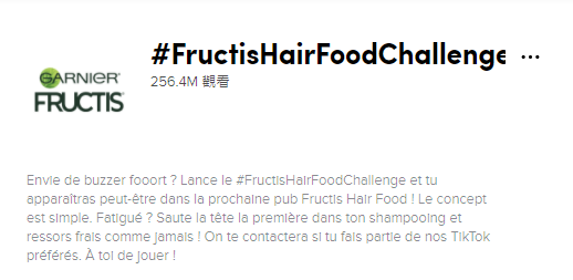 为了吸引更多的年轻群体,Garnier 决定举办一个名为#FructisHairFoodChallenge 的品牌标签挑战,以在他们的新产品为切入点,引发扩散式的传播,同时呼吁所有用户展示他们自己使用 Hair Food的“前后”转变。让一些对对洗发水效果有着较高要求的消费者更能好的感受到产品的亮点。