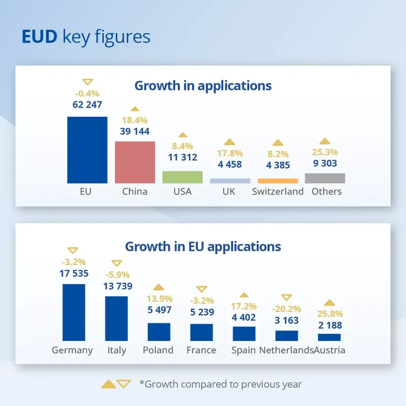 持续增长的申请数量表明,全球的企业、创新者和创作者仍在通过欧盟的知识产权系统投资保护。