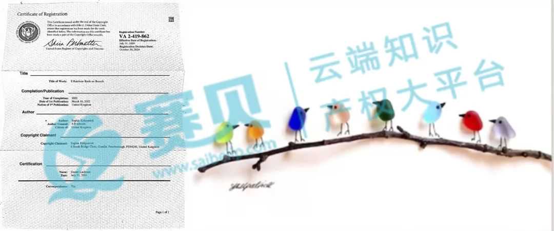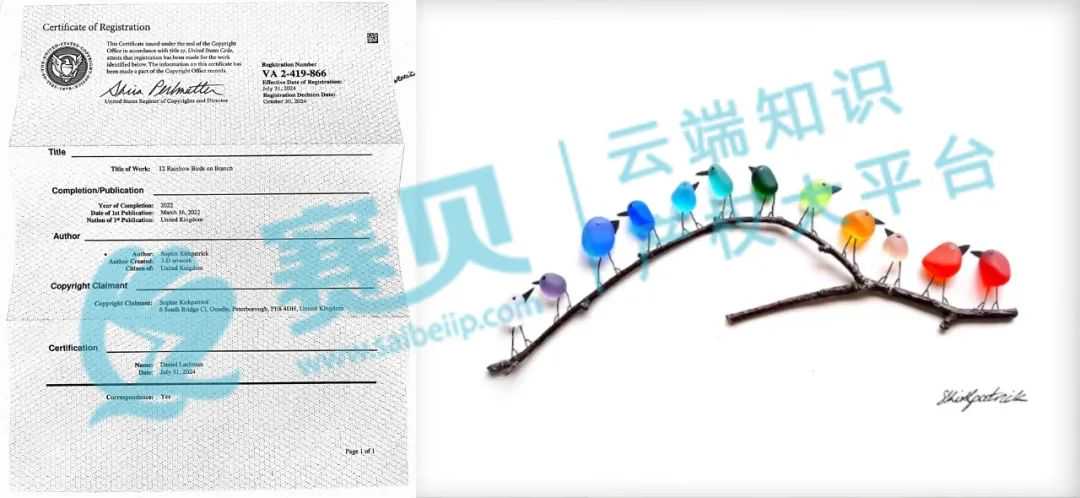 【24-cv-12169】海玻璃彩虹鸟装饰画TRO版权维权,这三幅作品请谨慎使用!未开始冻结账户资金!