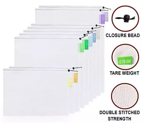 这种可重复使用的网眼包包由双缝网制成,每个可以安全支撑高达11磅的重量,它们有颜色编码的标签和抽绳,不仅可以用来装瓜果蔬菜,还可以用来清洗熟食,存放玩具,运送海滩必需品。居家旅行都比较实用,所以广受好评。这款产品和不锈钢吸管一样,是主打环保牌的另一个胜利。