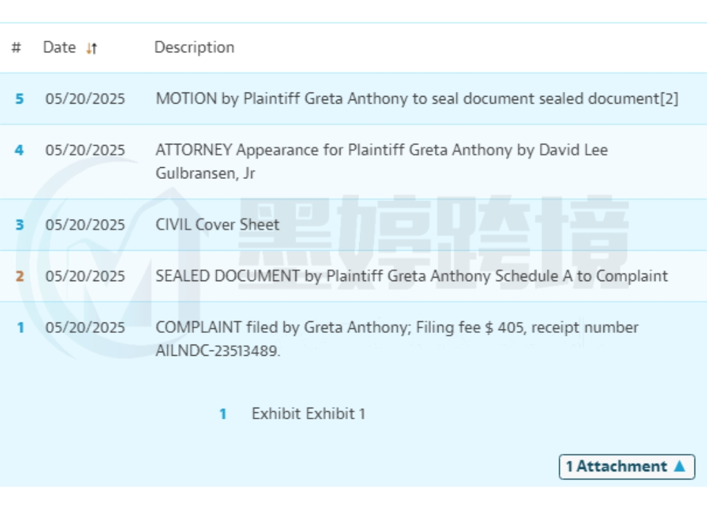本案于2025年5月20日发起侵权诉讼,案件号:25-cv-5623,原告尚未提起TRO禁令(Temporary Restraining Order,临时限制令)的动议。